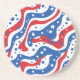 This sandstone coaster is shown in a patriotic July 4th stars and stripes mod print design.