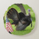 Patriotic Male Turkey displaying his tail feathers in front of an American Flag