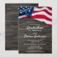 Patriotic American Flag Military Graduation Invitations. Invite friends and family to your patriotic graduation party with this USA flag patriotic graduation invitation. USA American flag design on dark rustic wood. This military graduation invitation is also perfect for military retirement invitations, change venue in personalisation. See our collection for matching military graduation gifts,party favours, and supplies. COPYRIGHT © 2021 Judy Burrows, Black Dog Art - All Rights Reserved.Patriotic Usa American Flag Military Graduation Invitation