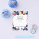 Personalise and add your business logo, name, address, your text, your own QR code to your instagram account. White background, decorated with balloons in patriotic US colours, red, blue and white with stripes and stars.