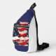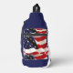 This cut and sew backpack sling bag is shown in a patriotic USA Flag print.
