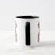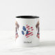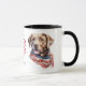 The feature on this unique mug is a watercolor image of a chocolate Labrador Retriever dog wearing an American flag scarf. The image is on two sides of the mug, with a stars and stripes paw print and your custom text between them.