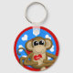 Keychain featuring an illustration of a cute little brown monkey holding a red USA heart, over a red, white, and blue circle heart design.