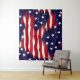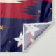 A vibrant and dynamic abstract representation of the American flag, featuring flowing red and white stripes interspersed with white stars on a deep blue background. The design captures the essence of patriotism and the spirit of freedom.