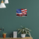 Vibrant Red, white and blue American flag, waving and flapping in the wind. A true sign of freedom and achievement. Order plain or framed. Text reads "these colours don't run", but you can customise the text for your use. Bald Eagle holding American Flag, with Red White and Blue. American Patriotic Photography and Artwork Prints are great for Veterans day, 4th of July or just for anyone to make American spirit part of their home decor. Add your custom name or text. All Designs Copyright © 2012 www.CuteComfy.com