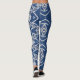 Get comfortable in these leggings with a pattern of white snow shapes on a bright cold blue background .