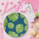 Pattern Cute Chic Banana Leaf Green Blue Paper Plate