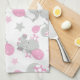 Pattern Of Elephants, Cute Elephants - Pink Grey Tea Towel