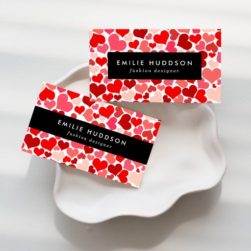 Cute, fun and adorable business cards with red hearts. Modern and trendy design, perfect for heart lovers.