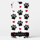 Pattern Of Paws, Black Paws, Red Hearts, Your Name Case-Mate iPhone Case