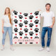 Pattern Of Paws, Black Paws, Red Hearts, Your Name Fleece Blanket