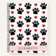 Pattern Of Paws, Black Paws, Red Hearts, Your Name Notebook