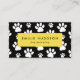 Cute, fun and adorable business cards with white paws on black background. Modern and trendy design, perfect for dog trainers, dog groomers, dog walkers, pet sitters, pet shops and veterinarians.