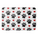 Pattern Of Paws, Dog Paws, Black Paws, Red Hearts Bath Mat