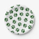 Pattern Of Paws, Dog Paws, Green Paws Paper Plate