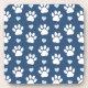 Pattern Of Paws, Dog Paws, White Paws, Blue Hearts Coaster