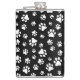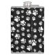 Pattern Of Paws, Paw Prints, Black and White Hip Flask