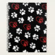 Cute, fun and adorable pattern with white paws and red and hearts on black background. Modern and trendy gift, perfect for the dog lover in your life.