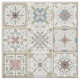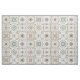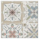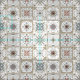 Fabric with a series of nine (9) different Spanish-style tiles in neutral coloured, mosaic pattern.