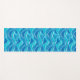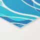 Seamless pattern with blue and turquoise waves with white tribal pattern. Water surface. Vector texture of the ocean and rivers. Wallpaper with a sea ornament. Summer beach fabric with boho decoration