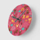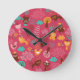 Pattern with cute birds and cats round clock