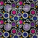 Fabric with Colourful pickleballs and white circles on black background. Perfect as a gift for a fashionable pickleball player.