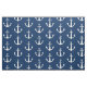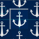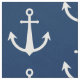Fabric with a pattern of white anchors. This fabric has two distinct colours that include a solid white anchor shape and a solid blue background.