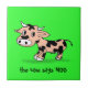 Patterned Cartoon Cow on Green with Moo Tile