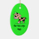Patterned Cartoon Moo Cow on Green Ceramic Tree Decoration