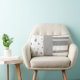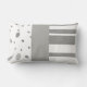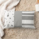 This accent pillow has an abstract pattern of dots and stripes in a soft grey and white design for home decor.