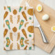 Patterned image featuring various breads tea towel