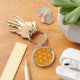 "Keep your keys safe and stylish with a round keyring featuring a unique pattern of abstract flowers."