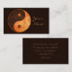 The traditional symbol for yin and yang is patterned with flowers and swirls in rich shades of brown and gold. The symbol may be enlarged to fill the product or reduced in size to a smaller circle depending on the look you want to create; a dark brown patterned background is included for this option. This business card is perfect for your health and wellness practice or yoga studio. Search ID325 to see other colour options for this design.