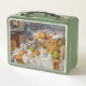 This is a standard metal lunchbox that appears to work just fine. We designed this box ourselves with an uploaded photo and custom text on the front and back. It looks absolutely beautiful except the front of the lunchbox is not centered like it shows in the photo. The print borders don't align with the inset flat part of the box where the preview photo online showed it perfectly centered in there. The back looks nice and centered though.