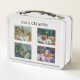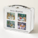 This is a standard metal lunchbox that appears to work just fine. We designed this box ourselves with an uploaded photo and custom text on the front and back. It looks absolutely beautiful except the front of the lunchbox is not centered like it shows in the photo. The print borders don't align with the inset flat part of the box where the preview photo online showed it perfectly centered in there. The back looks nice and centered though.