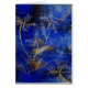 Beautiful artistic vintage fine art blue abstract painting.