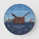 The clock did not take as long to arrive as I thought it might and was extremely well packaged. I didn't do the measurements so I didn't realize it is a little smaller than the average clock but that does not matter (just make sure you check if that's important to you).It is really nifty! It seems very solid and well made not flimsy at all. It has been going well and has kept good time in its few weeks on my wall. Nice product. Gets noticed too! Nicer in real life than the picture but true to the picture