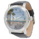Wrist watch featuring a view looking down the brick paved walkway at the entrance of Pensacola Beach, Florida, United States on a quiet early morning with some palm trees and a surfer statue. Looking for more prints or products? Feel free to visit my store: http://www.zazzle.com/timelessmomentsphtgy