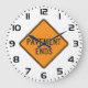 Keep time with a twist using this clock featuring the Pavement Ends road sign. The orange diamond traffic design adds a bold and playful touch to home, office, or garage decor. Perfect for sign lovers and anyone who enjoys unique wall art.