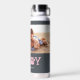 The bottle looks even better in real life. The ice cubes I put in lasts all day! I have my bottle with me all the time. It's summer and having something cold to drink feels amazing. With this bottle I always have something super cold. I have only tried the hot drink once and it lasted a long time as well. The color blue is a navy blue and the white printed on it is vibrant. It printed perfectly. I love my personalized smile water bottle.