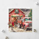 Paw-la-la-la-la, Christmas, Aussie Dogs, Red Truck. Our favourite Australian Shepherd and puppies happily playing around a cute vintage red truck with a Christmas Barn in the back ground. Everyone's dressed for the holidays. Ready for your personalisation and family's name. "HAPPY PAWLIDAYS!!"