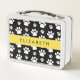 Paw Pattern, Dog Paws, Black and White, Your Name Metal Lunch Box