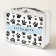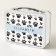 Paw Pattern, Dog Paws, Black and White, Your Name Metal Lunch Box