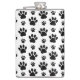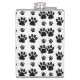 Paw Pattern, Dog Paws, Paw Prints, Black and White Hip Flask