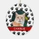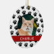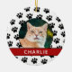Create your own custom photo personalised pet photo ornament this holiday season. Features paw print pattern background.