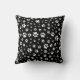 Custom pet photo pillow. Personalise it by replacing the sample image with an image of your pet or pets. Black and white paw print pattern with dominant black background and white paw print illustrations. Bold home decor for dog lovers who enjoy paw print art.