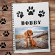 Paw Print Dog or Pet Photo and Name notebook. The notebook has three black paw prints, photo and a name - personalize the photo and the name with yours.