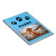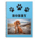 Paw Print Dog or Pet Photo and Name notebook. The notebook has three black paw prints, photo and a name - personalise the photo and the name with yours.