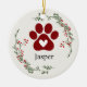 Paw Print Holly and Berry Christmas Ornament