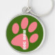 For a Dog Mom, or anyone who wants to claim territory, leave your mark with this original artwork by ZoeSPEAK, a pink paw print Keyring. The simple pink print, a dog paw, rests on a grass green background. The text says "DOG MOM", but can be changed to the name of your “best friend”, or deleted if you prefer. The background color can be changed to suit the territory.
